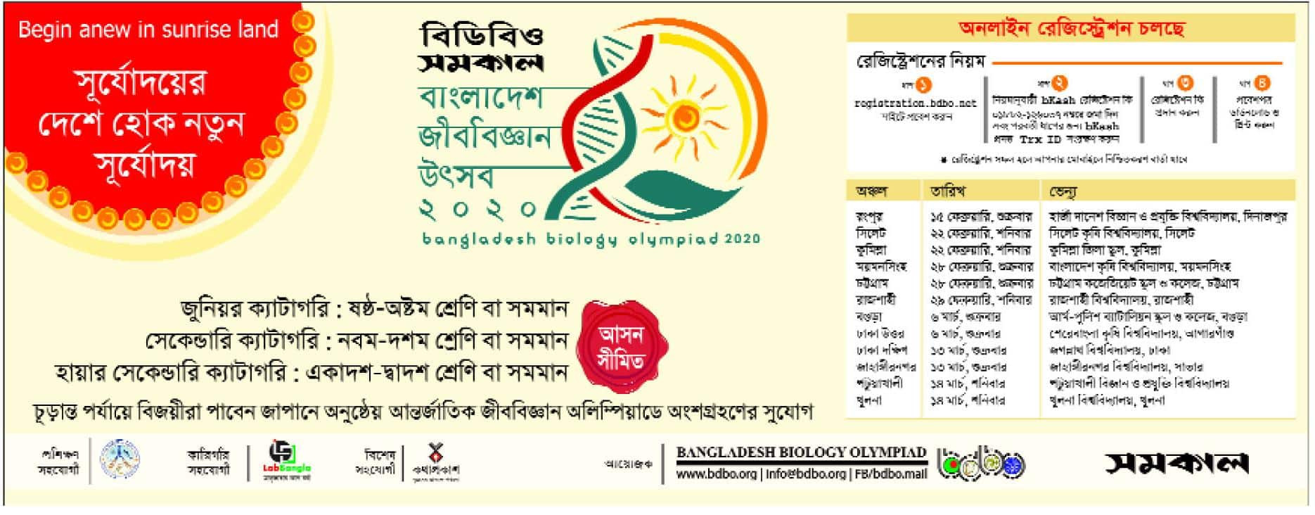 Bangladesh Biology Olympiad, 152/1, First floor, Green road, Panthapath signal, Adjacent to Health and Hope Hospital, Dhaka-1205, Bangladesh.
