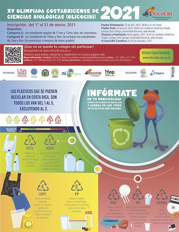 The National Biology Olympiad is organized by a committee headed by Universidad Nacional with the collaboration of representatives of the public universities: Universidad de Costa Rica and Universidad Estatal a Distancia, one representative of the Ministry of Public Education and one for the Ministry of Science and Technology.